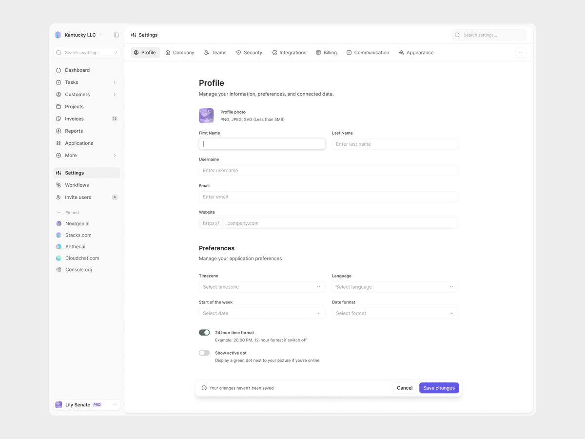 Account settings